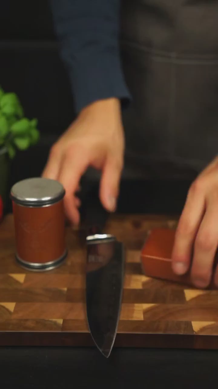 Fest kniven til den magnetiske knivholderen, og bruk rullesliperen ved å føre den langs knivens kant. Dette gjør det lett å slipe både husholdnings- og kjøkkenkniver. Du kan sjekke ut vår TikTok bruker der vi viser hvordan Skarph brukes