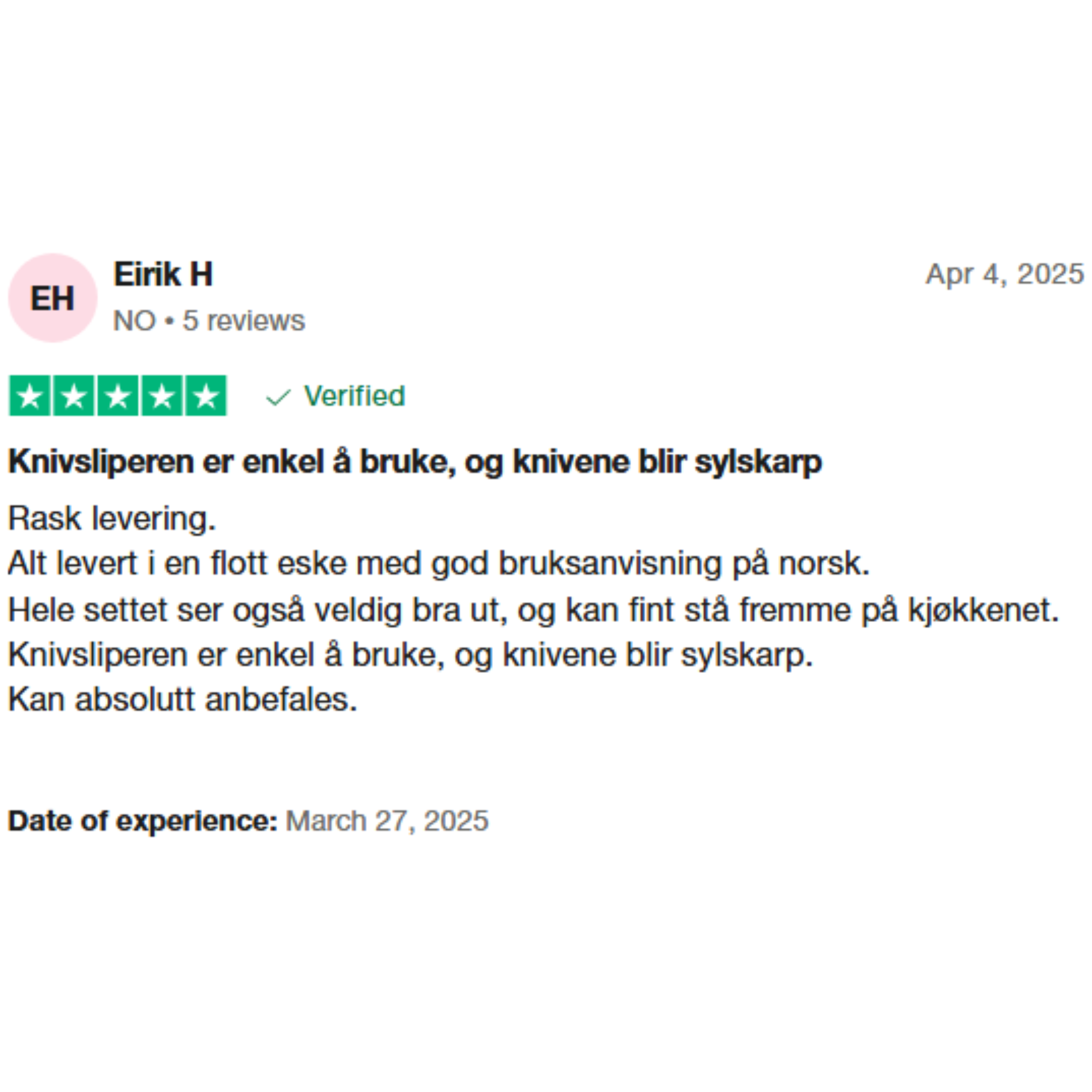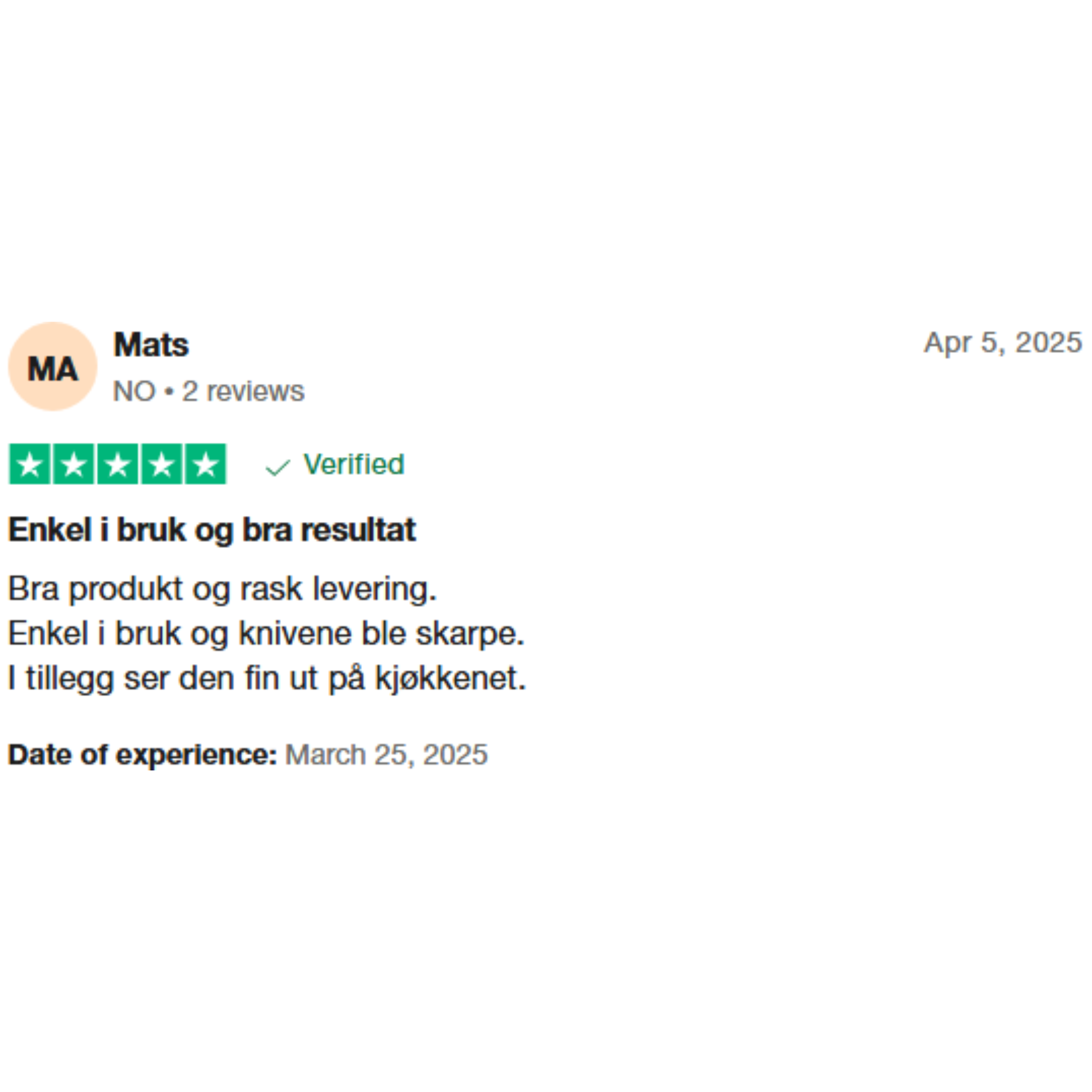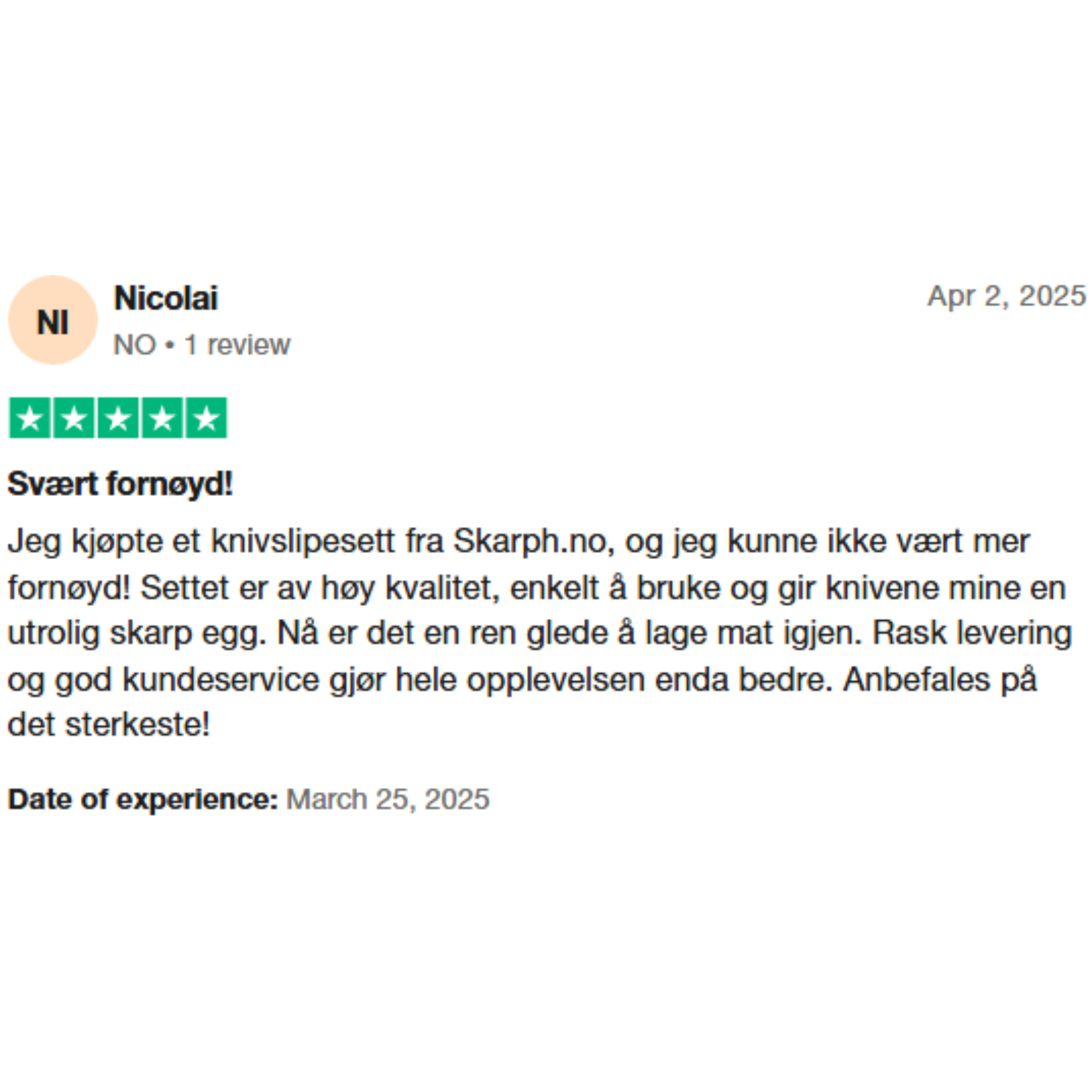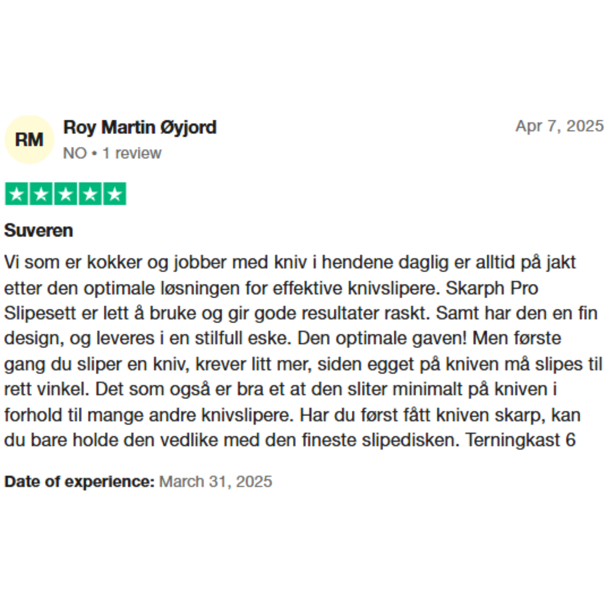 Folk velger Skarph fordi den er enkel å bruke, gir jevn og langvarig skarphet, og lar deg slipe knivene dine hjemme uten stress. Enten du er en amatørkokk som vil gjøre matlaging enklere, eller en proff som krever presisjon, passer Skarph perfekt for deg!