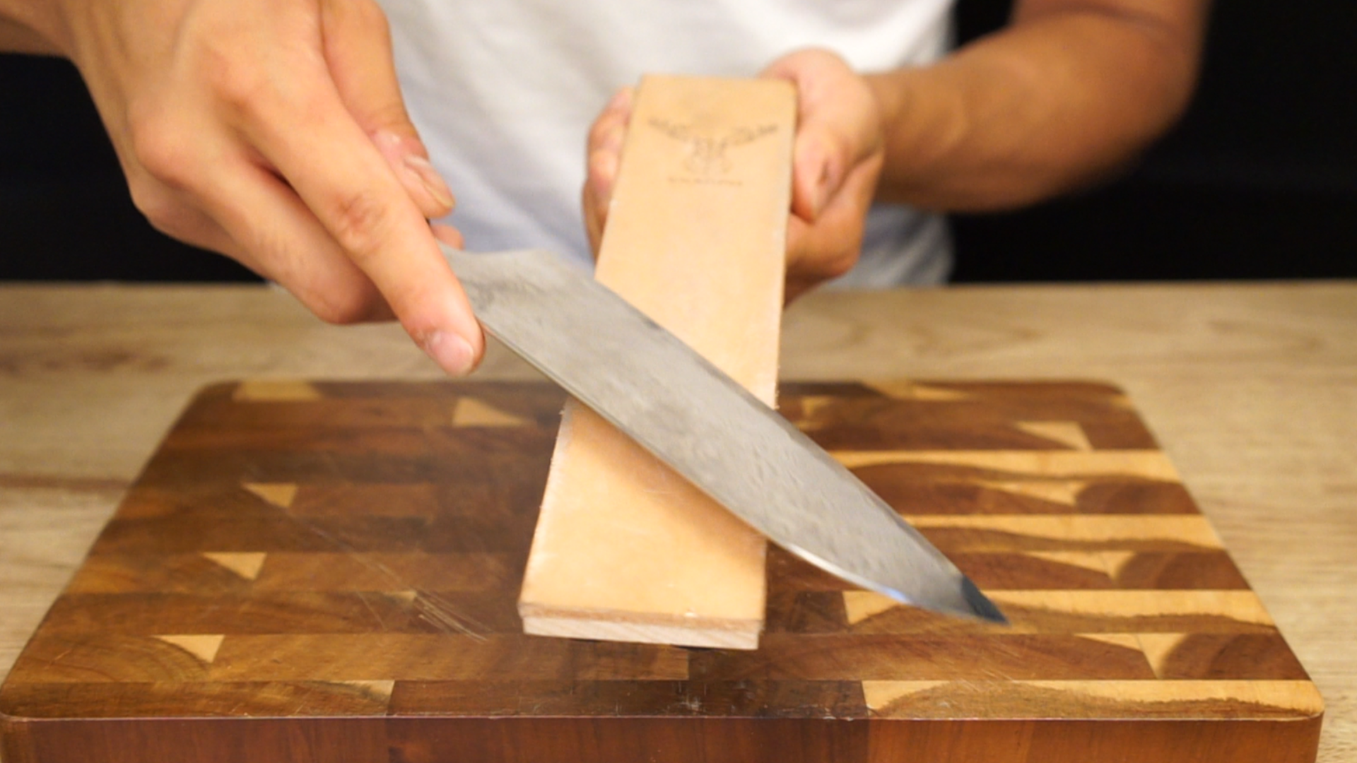 - Lærstropp / Lærstroppen retter opp mikroskader og fjerner små partikler, slik at kniven holder seg skarp lenger.